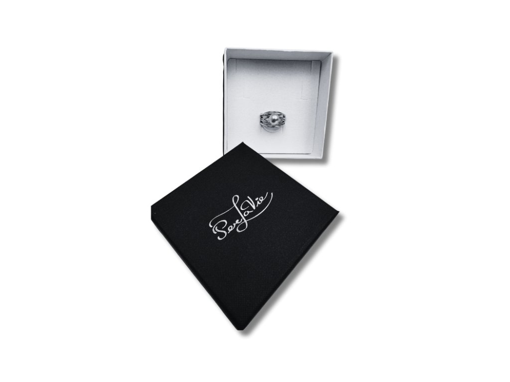 Jádrem tohoto mistrovského díla je okouzlující mořská perla z Francouzské Polynésie o průměru 9 mm, která je mistrovsky osazena uprostřed stříbrného prstýnku, aby se mohla plně rozvinout její přirozená krása. S vědomím, že každá perla je unikátní, se můžete těšit na prstýnek, který je opravdu jedinečný.